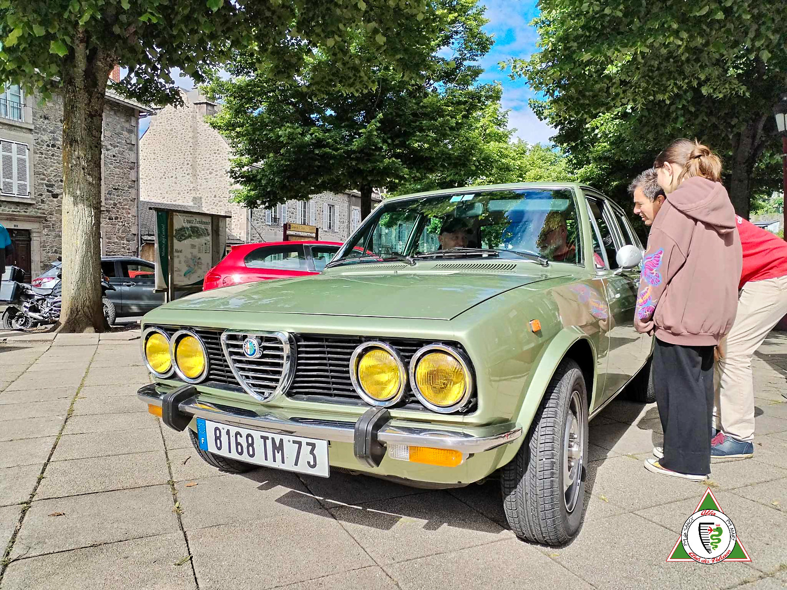 Le rendez-vous était donné sur la place principale de Murat en face de l’Hôtel de Ville. Monsieur Gilles Chabrier, maire de la ville de Murat est venu nous accueillir avec trois de ses conseillers municipaux. Murat, avec ses manifestations automobiles régulières, est ville d’accueil des Véhicules d’Époque.