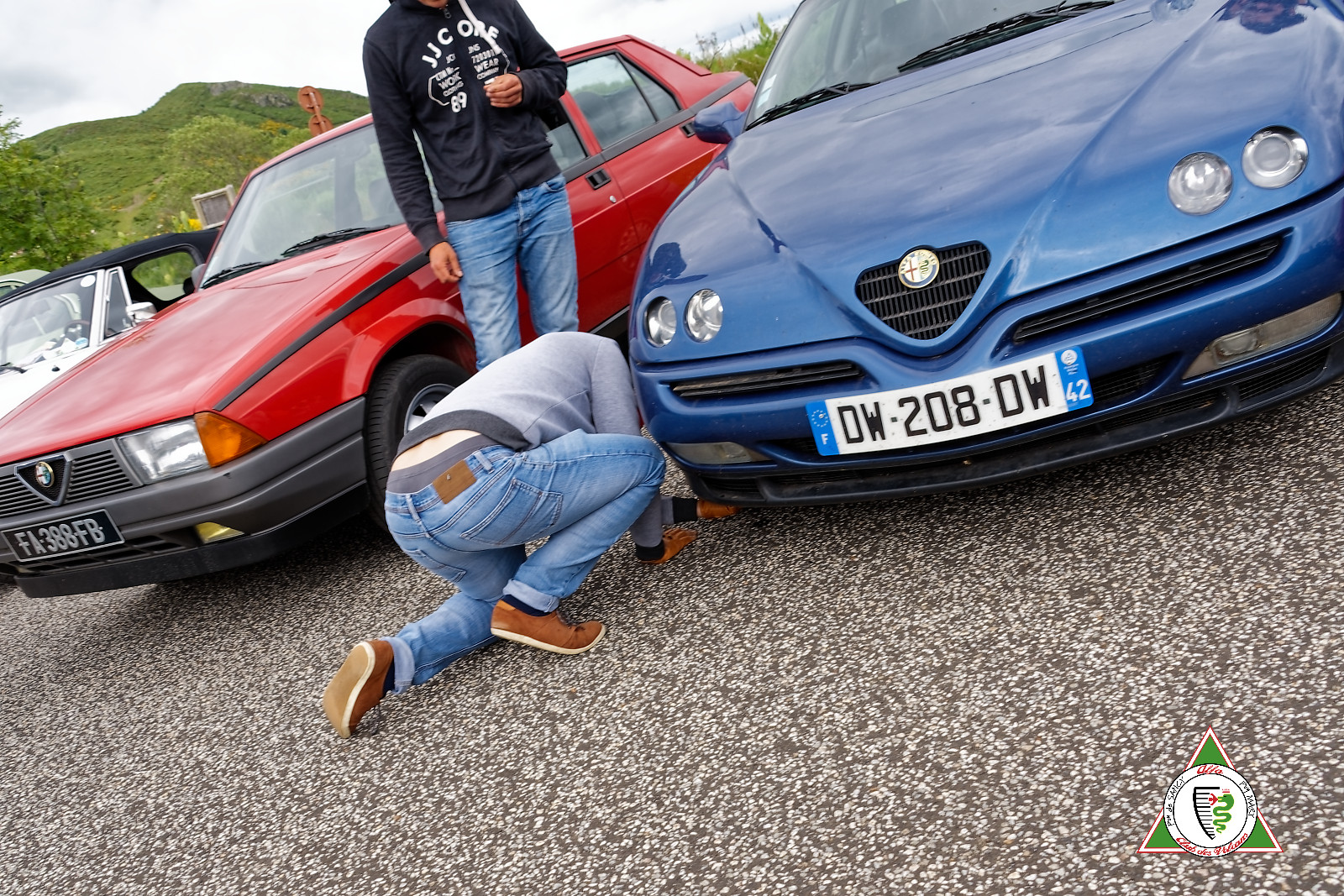 Les belles Alfa Romeo attirent les badauds qui viennent discuter comme ce monsieur de 94 ans qui nous raconte sa vie avec ses sept Alfa !