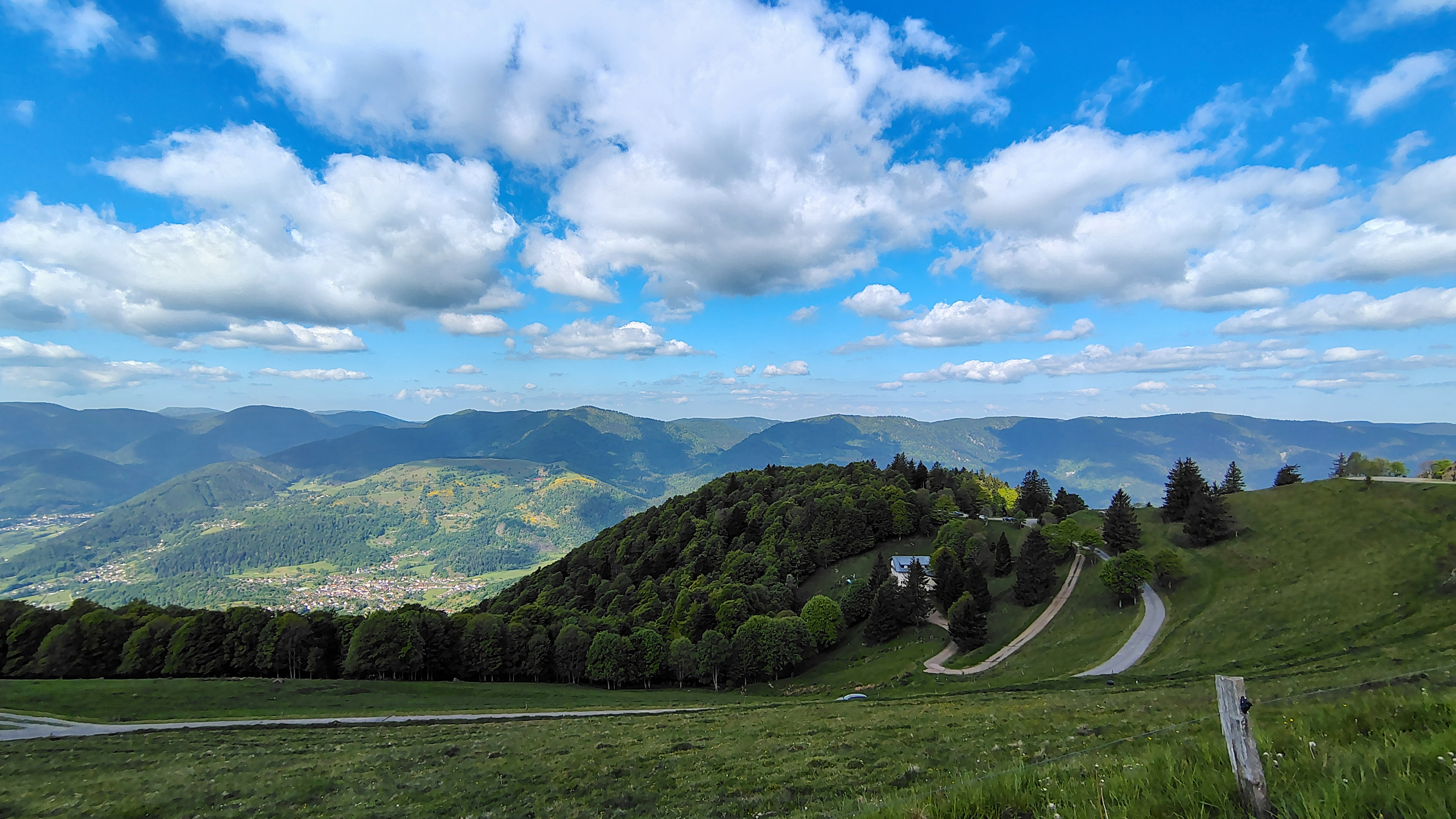 Après cette mise en jambe sportive, un moment plus tranquille nous a menés à travers les villages typiques alsaciens, avant d’attaquer le grand final de la journée : l’ascension du Ballon d’Alsace. Une montée de 20 minutes où l’air s’est rafraîchi, rendant le café et les parts de gâteau à l’arrivée encore plus savoureux.