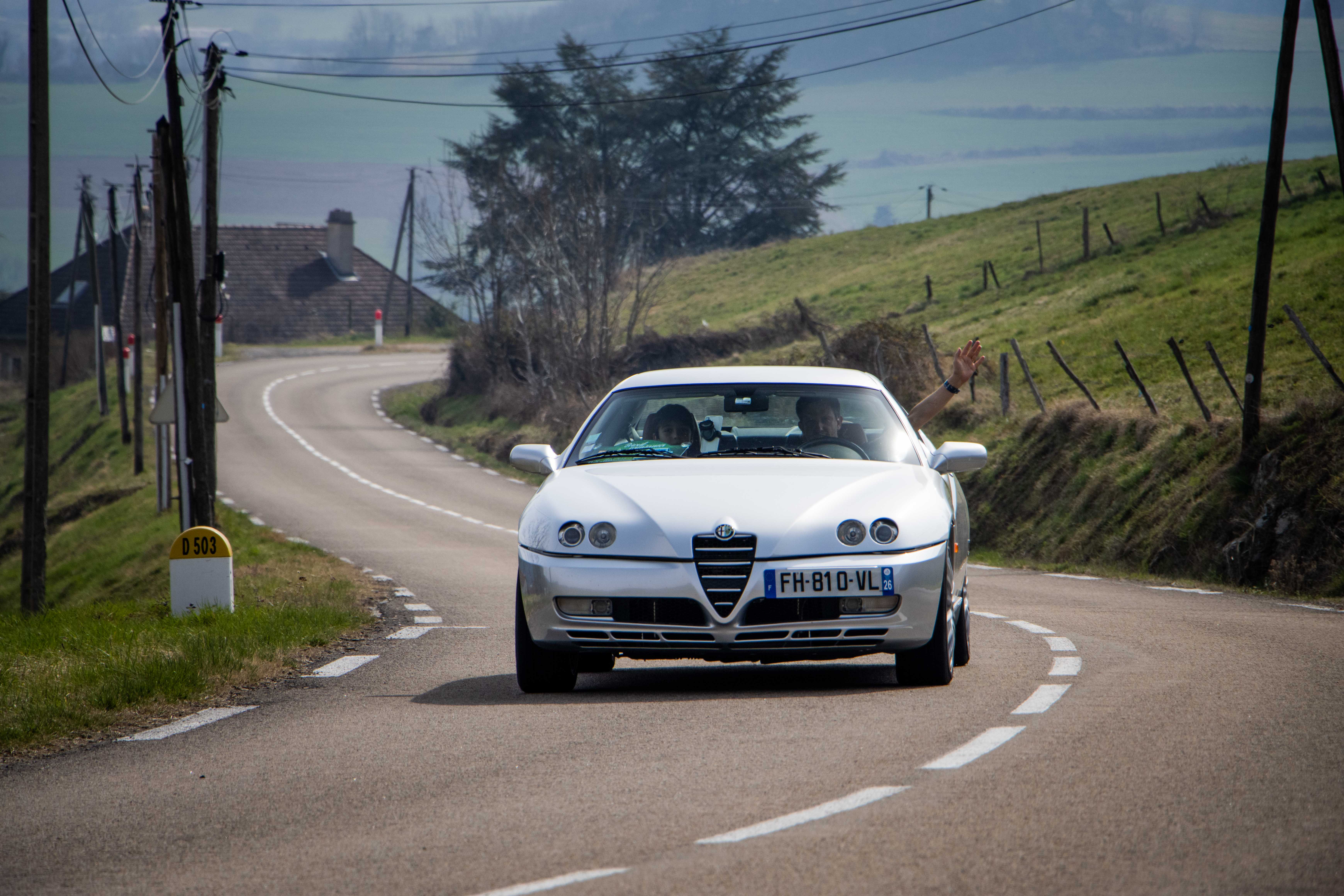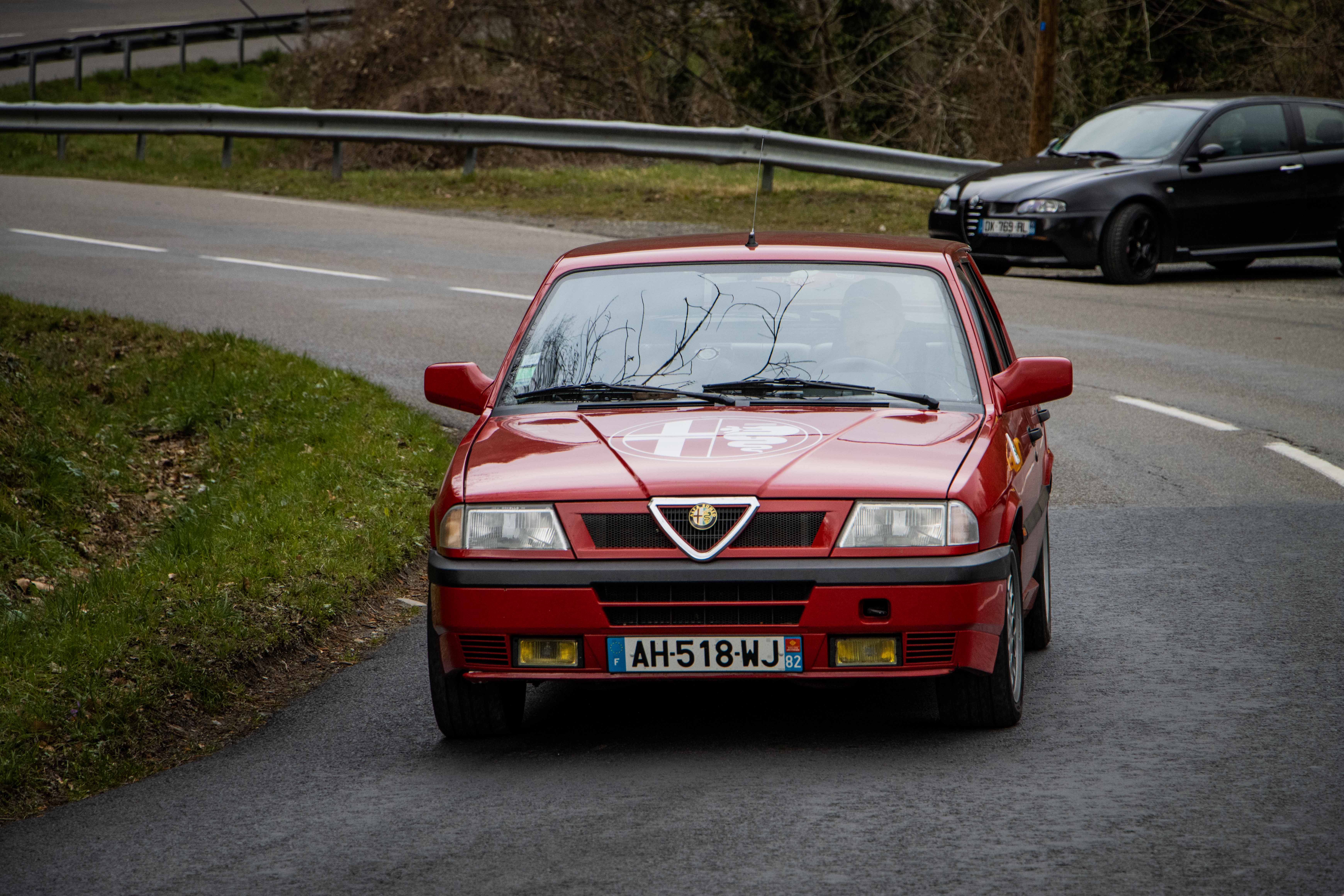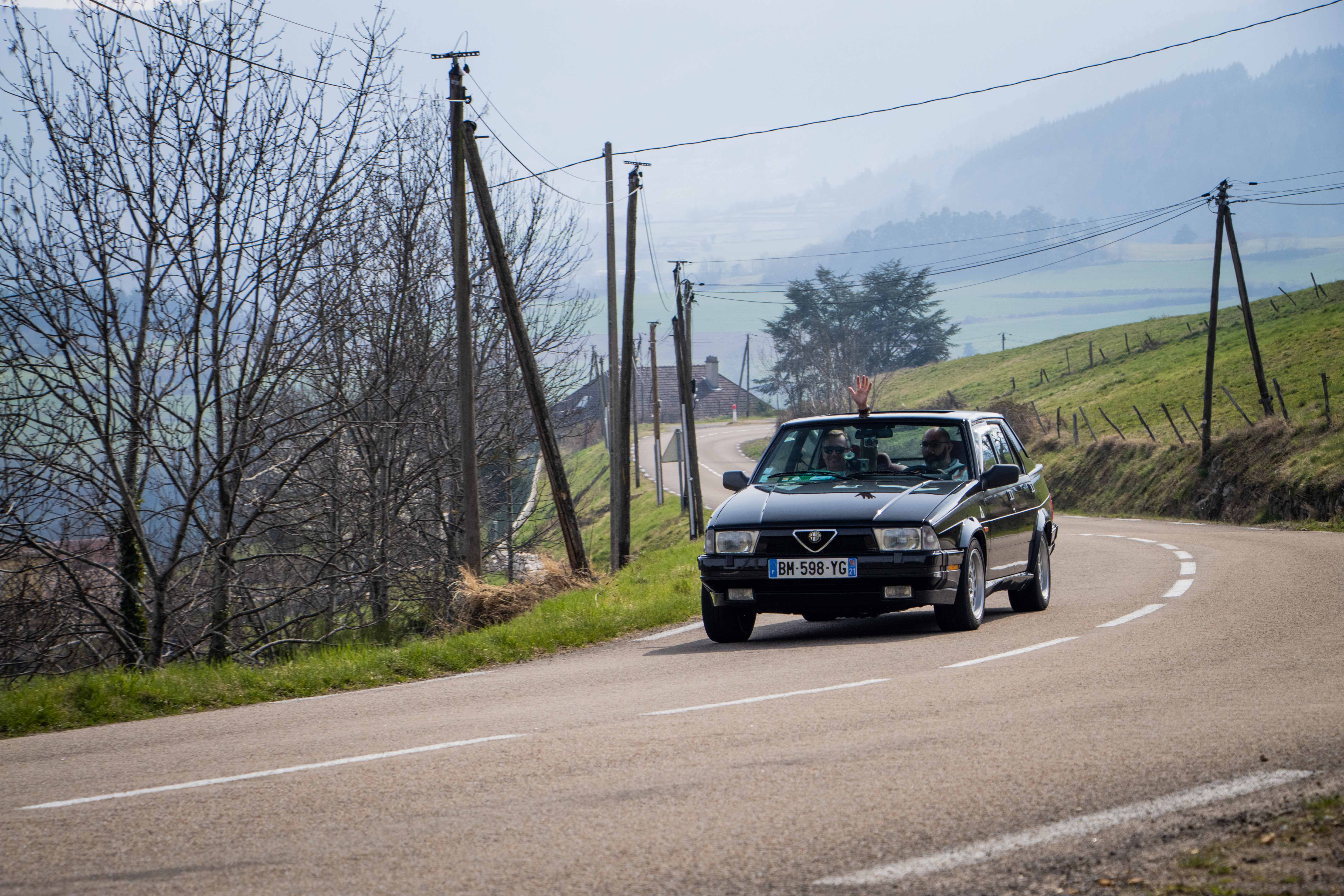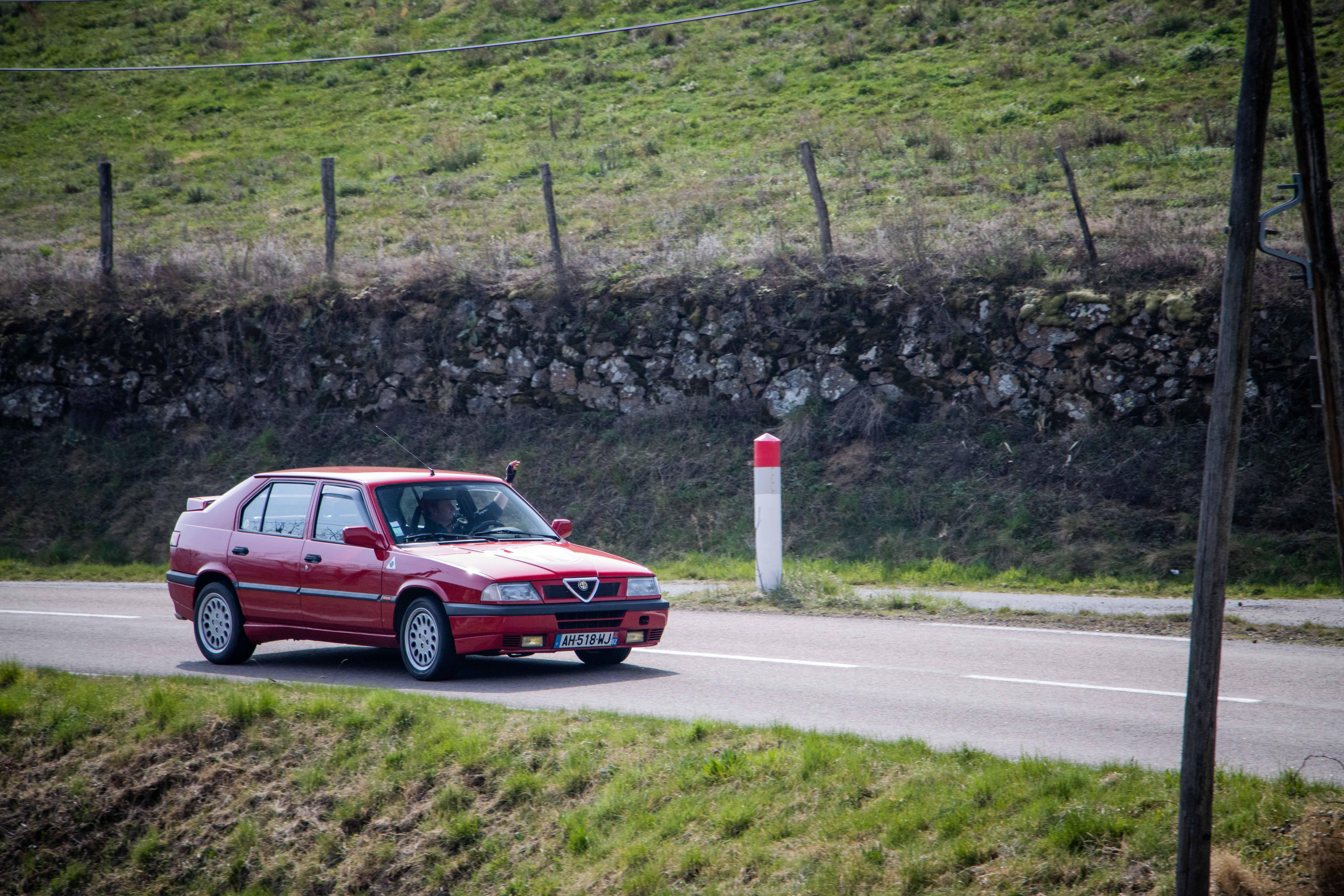 Le dimanche matin, le soleil laissait place à un ciel gris comme on l’aime dans le Nord… du département. Les voitures étaient bien évidement réveillées avant leurs pilotes et n’avaient qu’une hâte : en découdre sur les magnifiques routes dénichées par Marc. La fine équipe était donc au départ de Givors malgré quelques retardataires sur le mauvais parking (un classique). Les modèles de la marque au Trèfle retrouvaient alors leur terrain de jeu favori : de petites routes avec des virages à ne plus en finir. Finalement tout le monde se retrouvait heureux et le ventre creux pour un dernier restaurant du terroir. Au final, ce sera pas moins de 230 kilomètres qui auront été parcourus par des modèles très divers tels que : GTV 116, 75 Turbo, 33, 147 et 156 GTA, Mito, Giulietta quadrifoglio, Giulia quadrifoglio et une superbe 4C, etc.