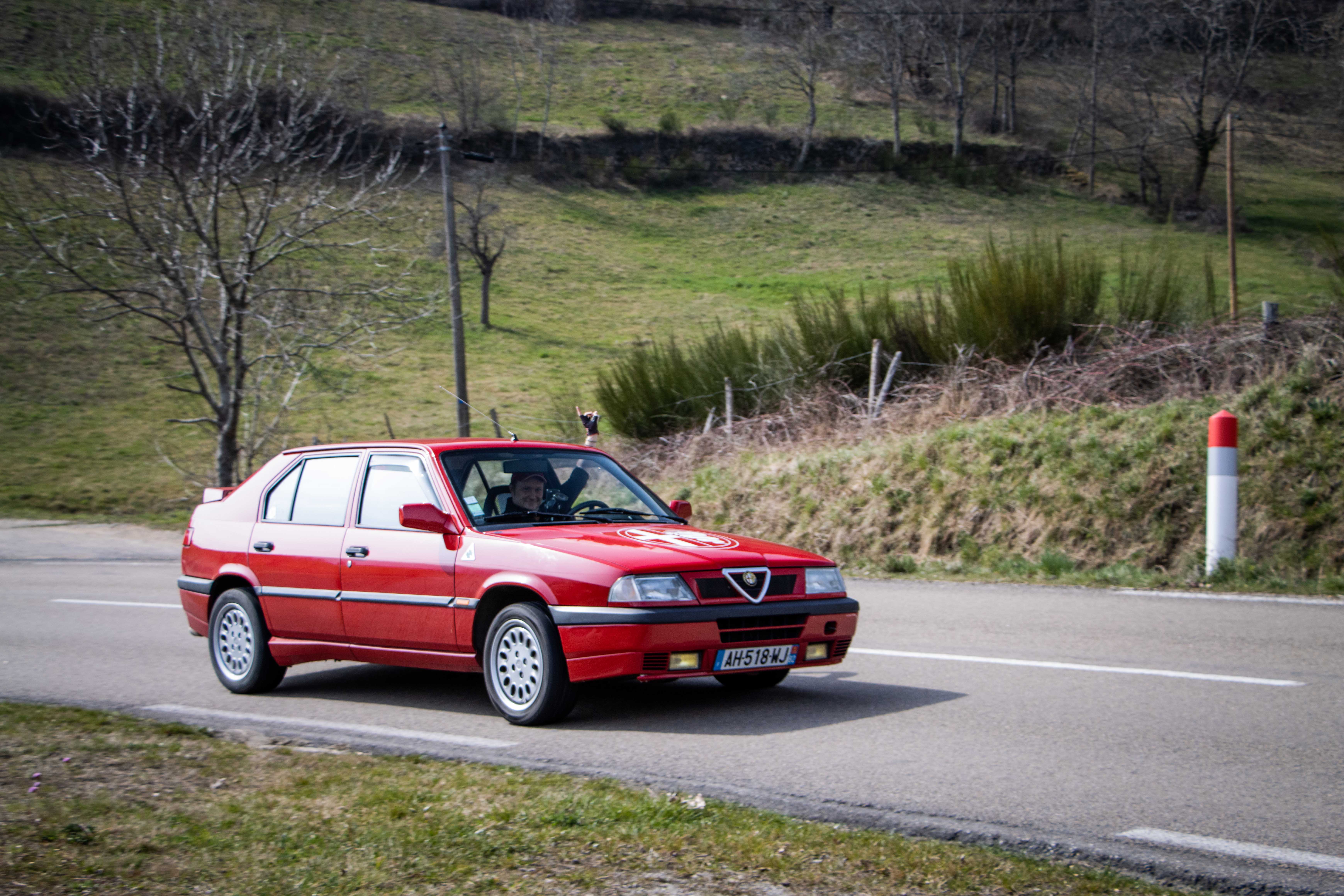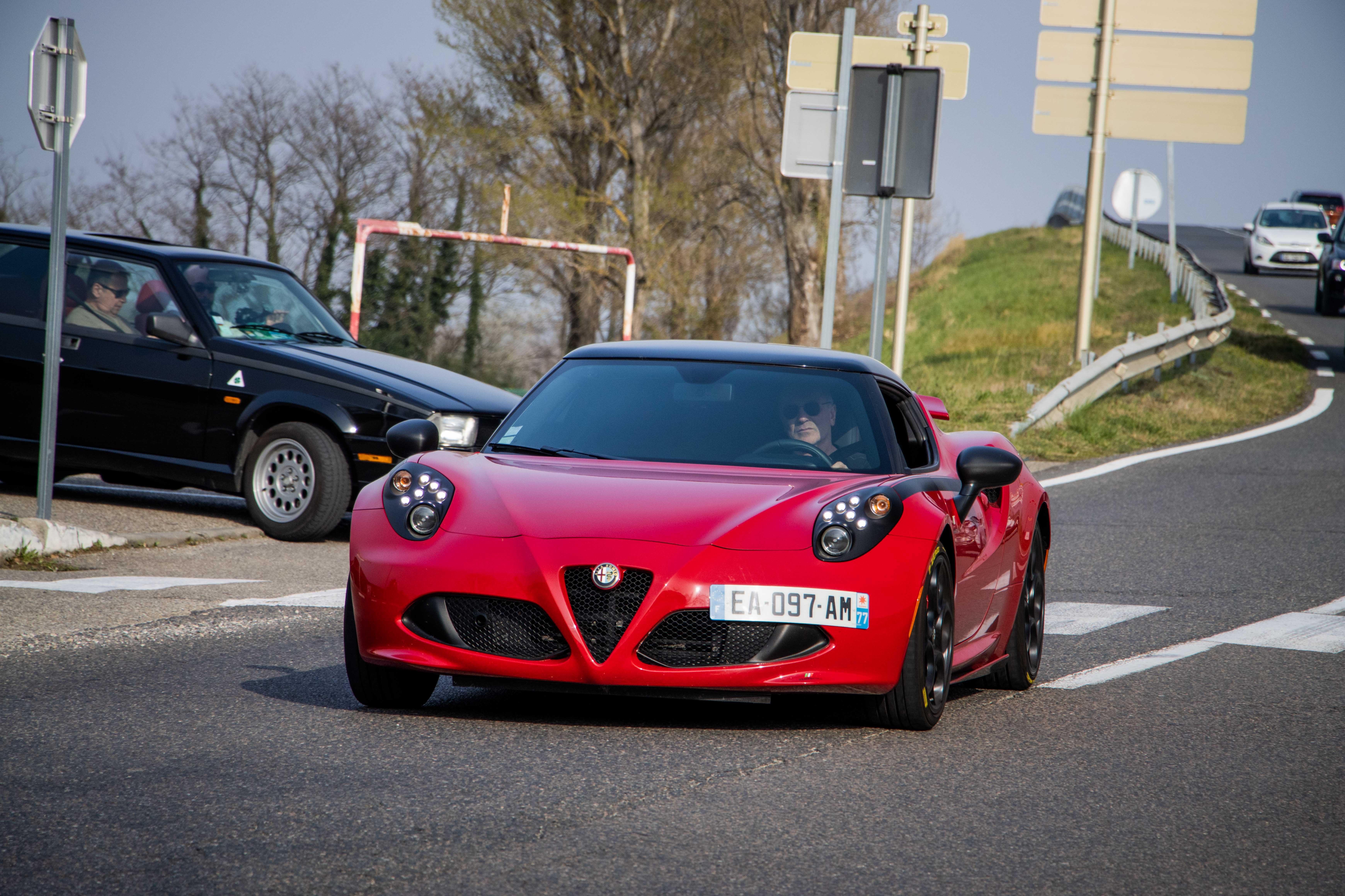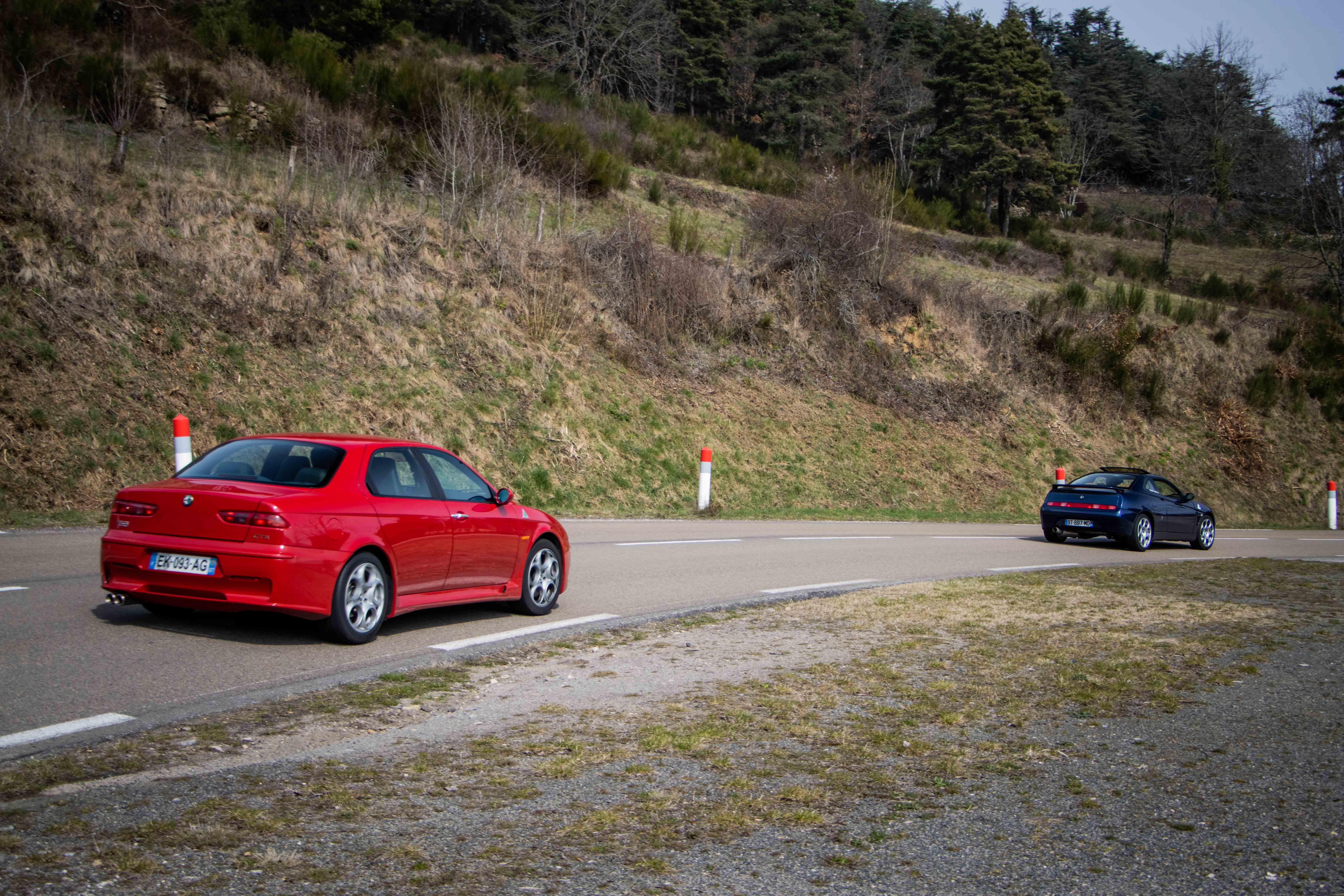 Le dimanche matin, le soleil laissait place à un ciel gris comme on l’aime dans le Nord… du département. Les voitures étaient bien évidement réveillées avant leurs pilotes et n’avaient qu’une hâte : en découdre sur les magnifiques routes dénichées par Marc. La fine équipe était donc au départ de Givors malgré quelques retardataires sur le mauvais parking (un classique). Les modèles de la marque au Trèfle retrouvaient alors leur terrain de jeu favori : de petites routes avec des virages à ne plus en finir. Finalement tout le monde se retrouvait heureux et le ventre creux pour un dernier restaurant du terroir. Au final, ce sera pas moins de 230 kilomètres qui auront été parcourus par des modèles très divers tels que : GTV 116, 75 Turbo, 33, 147 et 156 GTA, Mito, Giulietta quadrifoglio, Giulia quadrifoglio et une superbe 4C, etc.