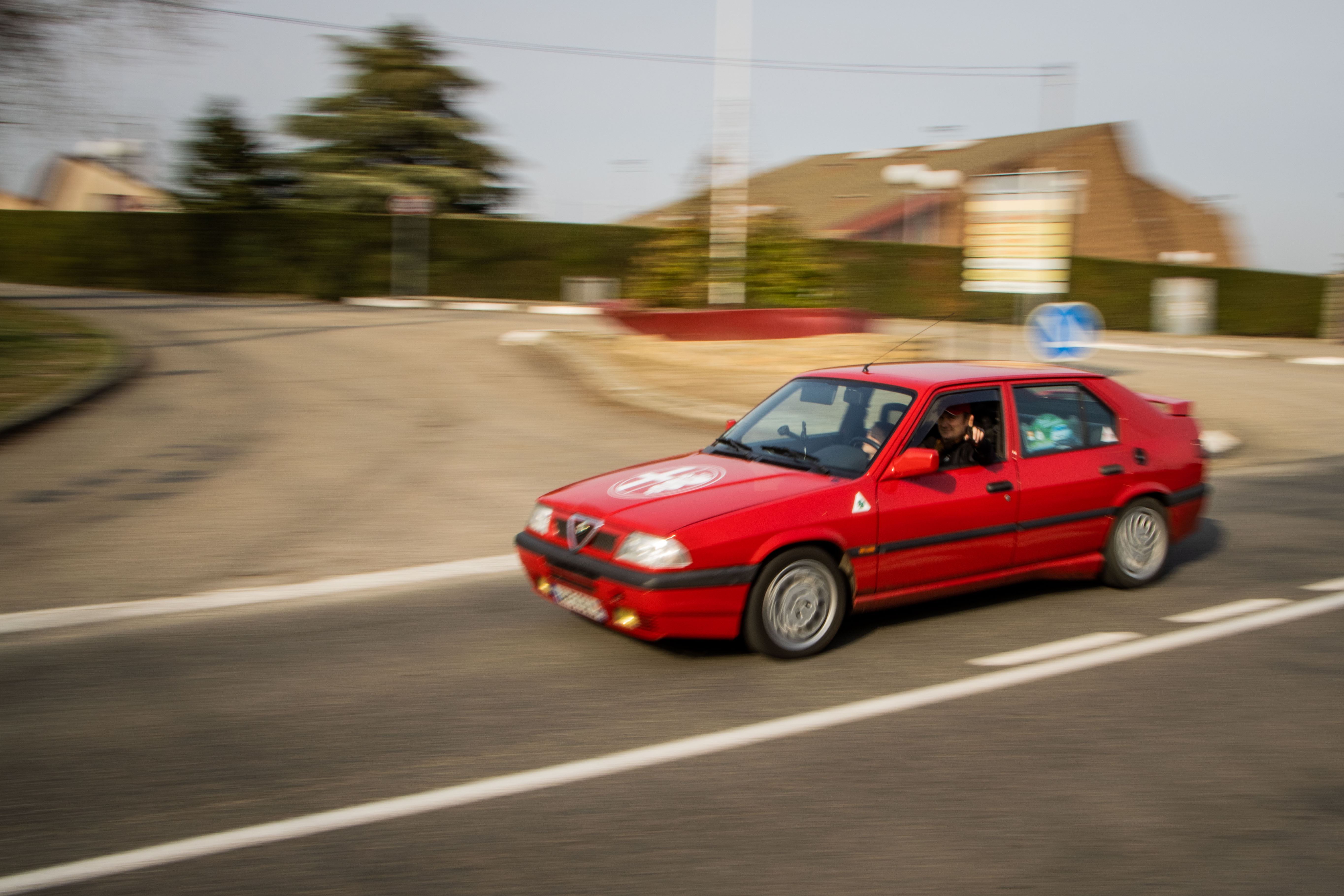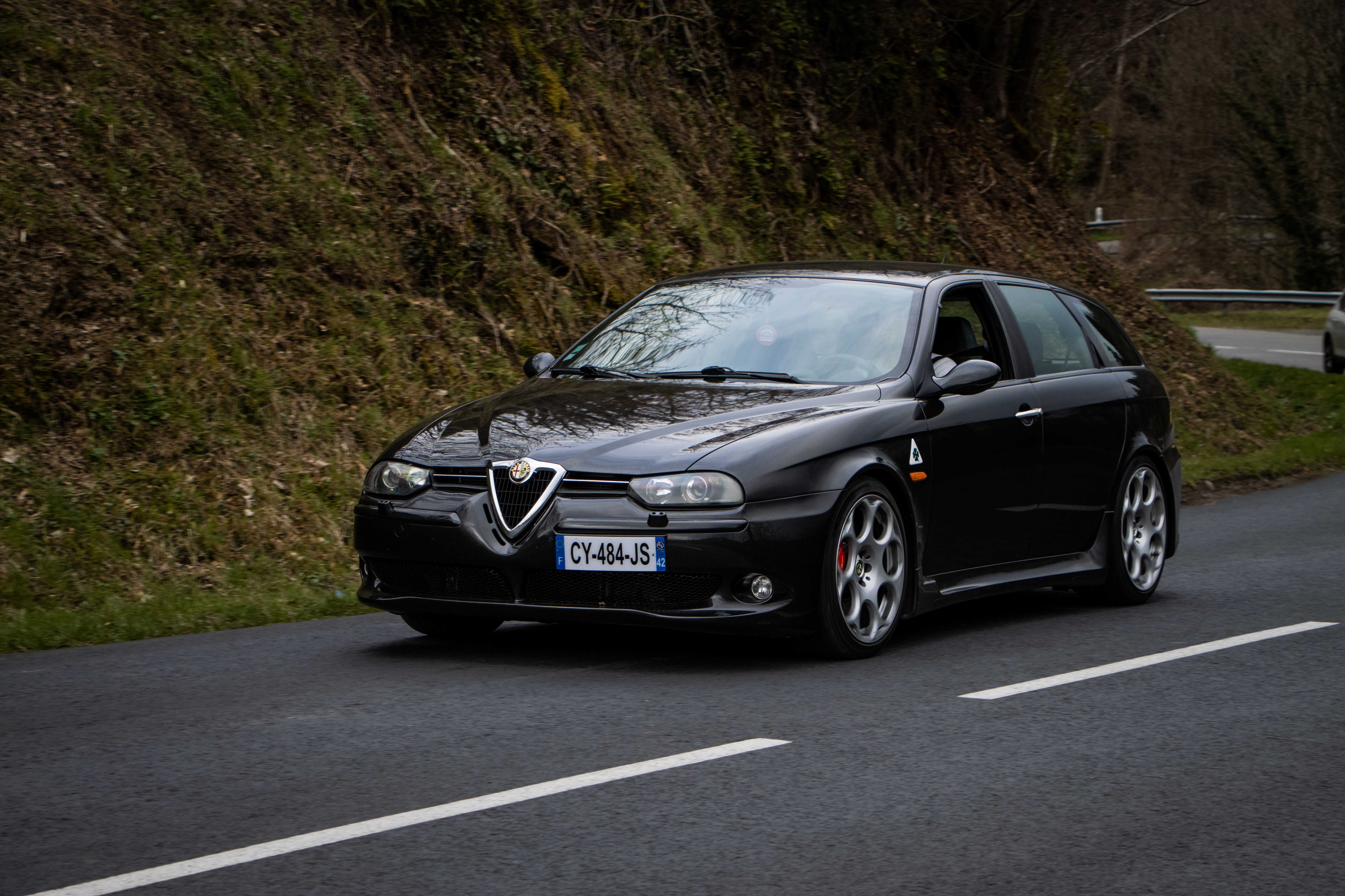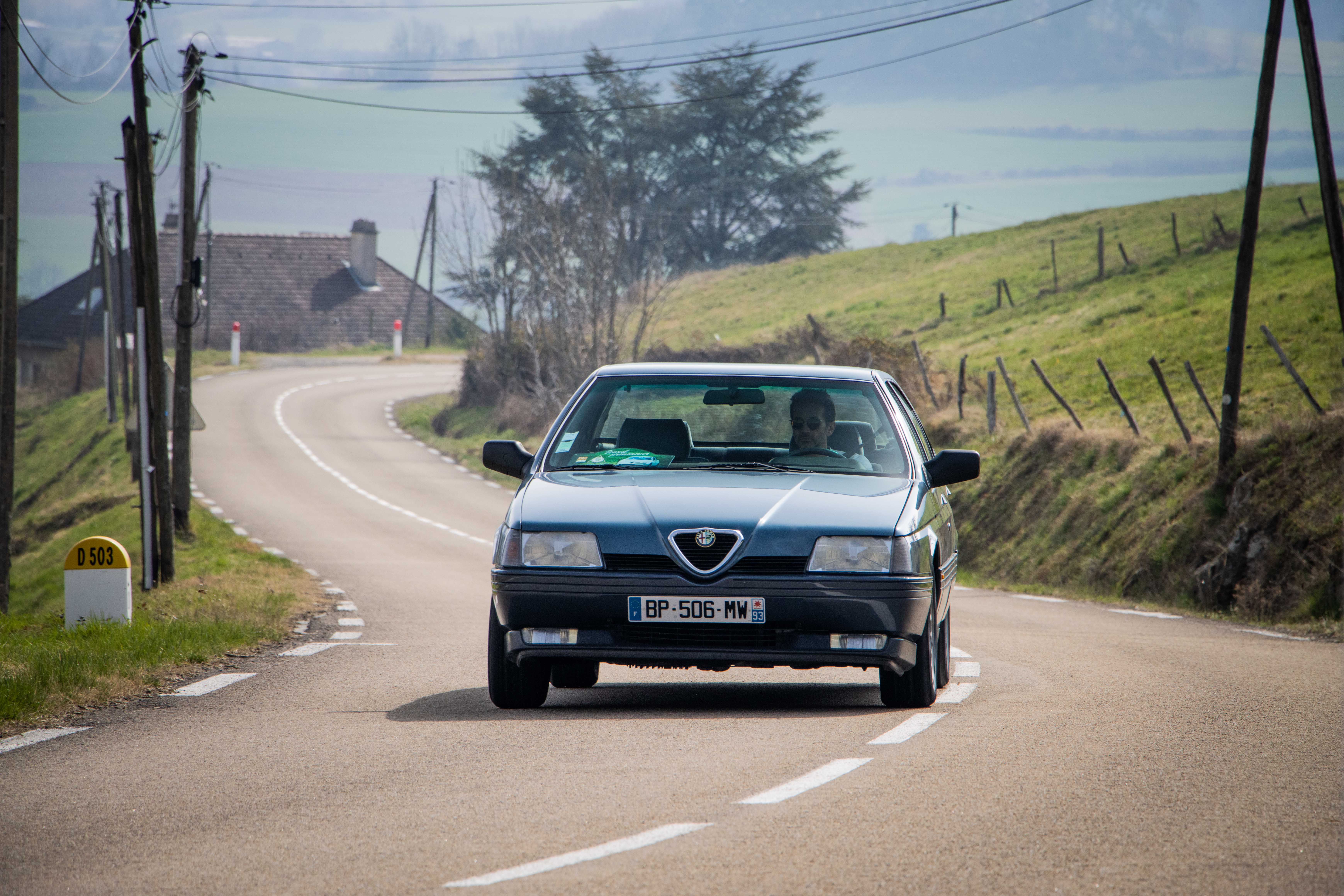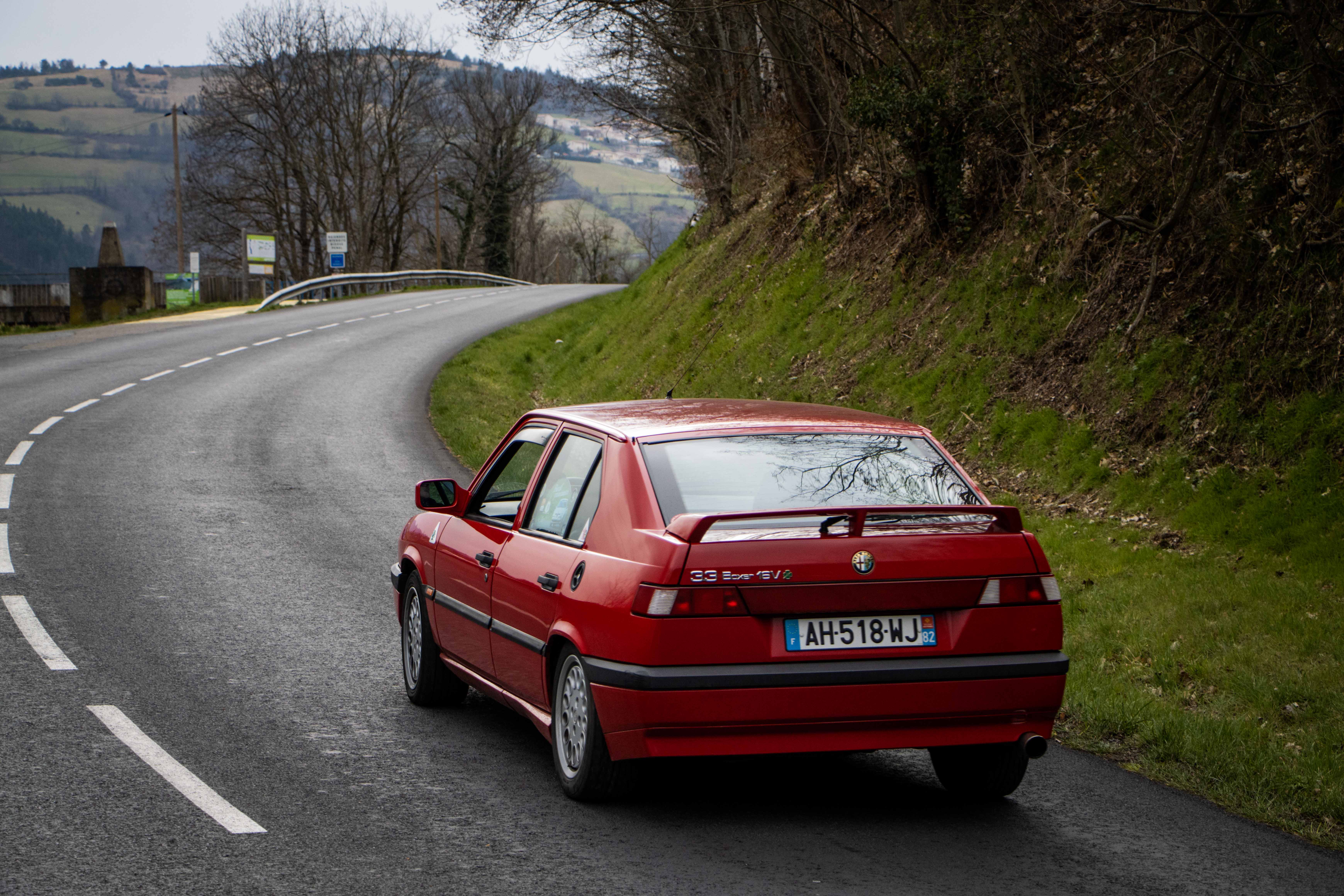 Le dimanche matin, le soleil laissait place à un ciel gris comme on l’aime dans le Nord… du département. Les voitures étaient bien évidement réveillées avant leurs pilotes et n’avaient qu’une hâte : en découdre sur les magnifiques routes dénichées par Marc. La fine équipe était donc au départ de Givors malgré quelques retardataires sur le mauvais parking (un classique). Les modèles de la marque au Trèfle retrouvaient alors leur terrain de jeu favori : de petites routes avec des virages à ne plus en finir. Finalement tout le monde se retrouvait heureux et le ventre creux pour un dernier restaurant du terroir. Au final, ce sera pas moins de 230 kilomètres qui auront été parcourus par des modèles très divers tels que : GTV 116, 75 Turbo, 33, 147 et 156 GTA, Mito, Giulietta quadrifoglio, Giulia quadrifoglio et une superbe 4C, etc.